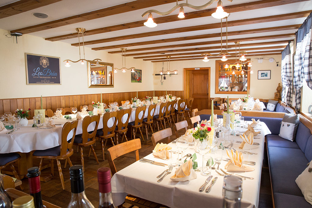Neben auserwählten Weinen aus der Region ist unsere Hausbrauerei mit dem dazugehörigen „Leo-Braustüble“ (für max. 40 Personen) und dem Biergarten ein ganz besonderes Highlight. Köstliche Schnäpse stammen ebenfalls aus der eigenen Brennerei. Auch unsere kleinen Gäste kommen auf ihre Kosten. Kinderspielecke und Gartenspielplatz gehören zum Haus.