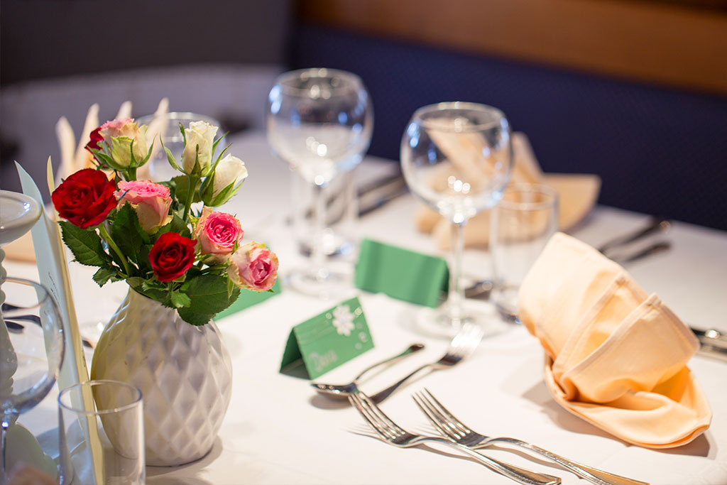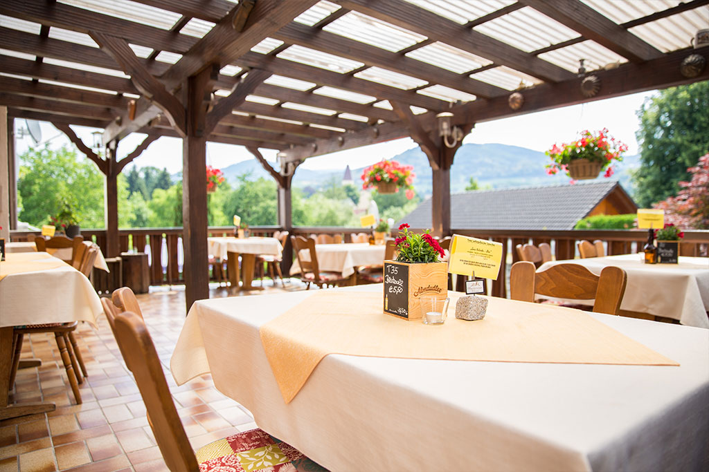 Im behaglichem Ambiente unserer Stuben wird die weithin bekannte badisch-elsässische Küche gehegt und gepflegt. Im Sommer ist es ein Hochgenuss die Speisen auch in der Laube oder auf der Terrasse zu genießen. Saisonale Frische und Produkte aus der Region haben bei uns immer Vorrang. Natürlich bieten wir auch Speisen aus der Diätküche an. Bei Feiern oder Festlichkeiten bieten wir Raum für max. 90 Gäste an.
